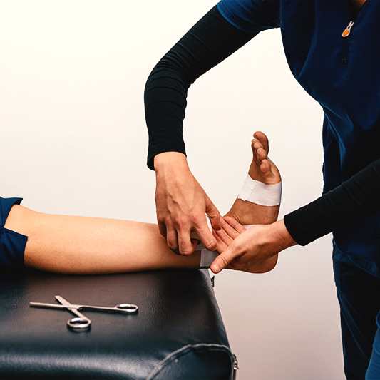 Pomagamo pri pravilni uporabi kompresijskih nogavic za zmanjševanje oteklin in izboljšanje prekrvavitve.